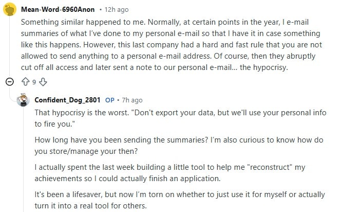 Many people have resonated with his experience. One user commented, “A familiar thing happened to me. Usually at certain times of the year, I email summaries of what I did to my personal email so I can have it in case something like this happens. However, the last company had a hard and fast rule that you’re not allowed to send anything to a personal email address. Naturally, they suddenly cut off all access and later sent a note to our personal email.”