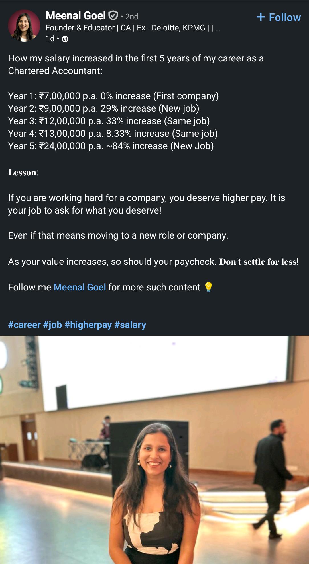 A Bengaluru-based chartered accountant recently shared her inspiring journey that answers this very dilemma. Starting her career on a modest salary of Rs 7 lakh per annum, she managed to more than triple her salary to Rs 24 lakh in just five years, not through luck or shortcuts, but through deliberate decisions and a resolute refusal to settle for less.