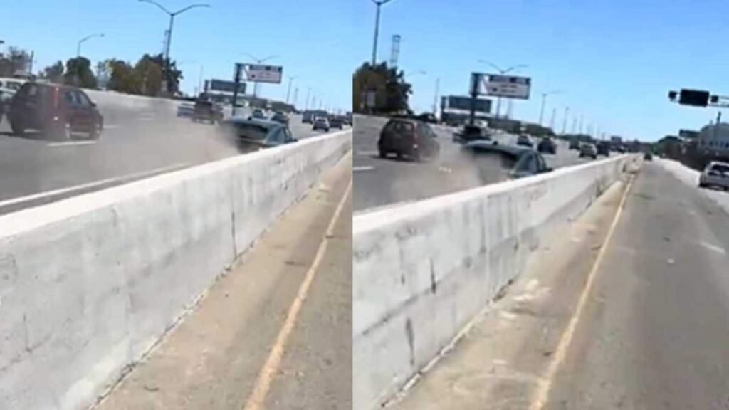 It was claimed that this person was panic when the car continued to move forward and shed next to the division before reaching the other car that came on its way. He posted a famous account on the video and claimed that the driver lost control of the car in a weak moment and began to scare it instead of pulling the brakes.