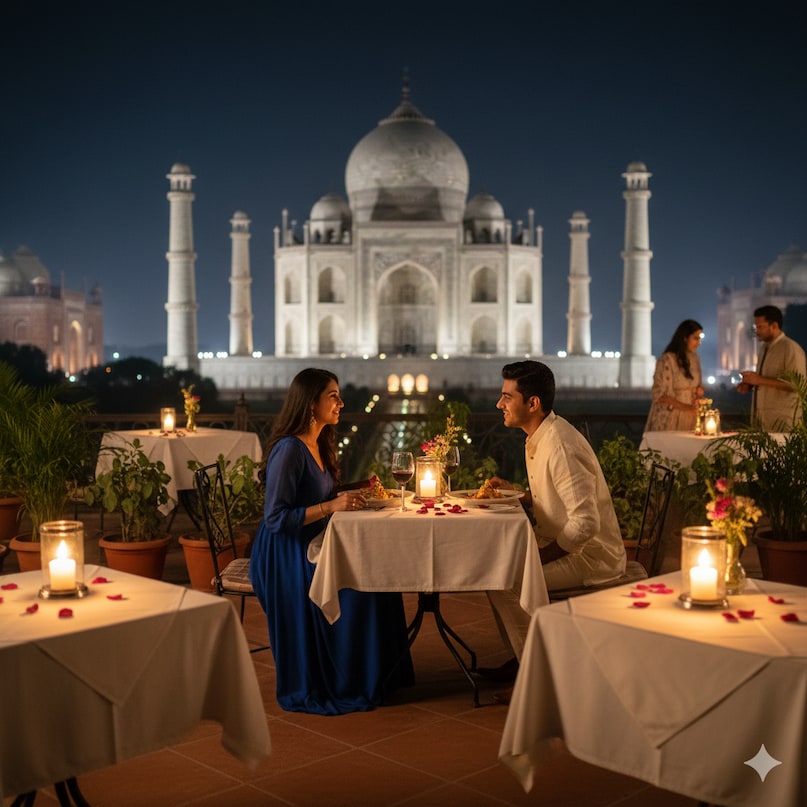 Rooftop Dinner and Moonlight Magic: There are many amazing rooftop restaurants in Agra to make your Valentine’s evening special. In the Tajganj area of Agra, you will find many such cafes, from the roof of which the Taj Mahal can be seen shimmering with milky light at night. A candlelit dinner with your partner and seeing the most beautiful wonders of the world in front of you – this experience can make your Valentine’s Day date the most memorable date in the world.