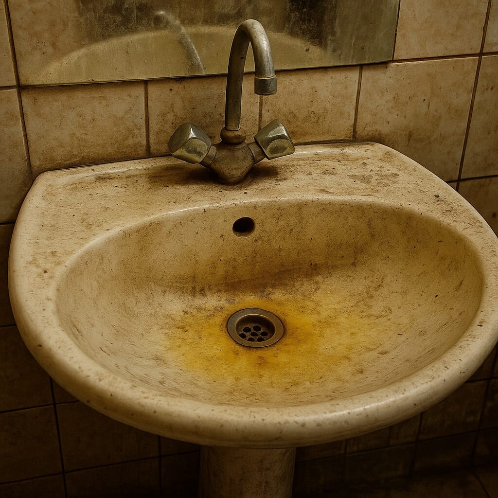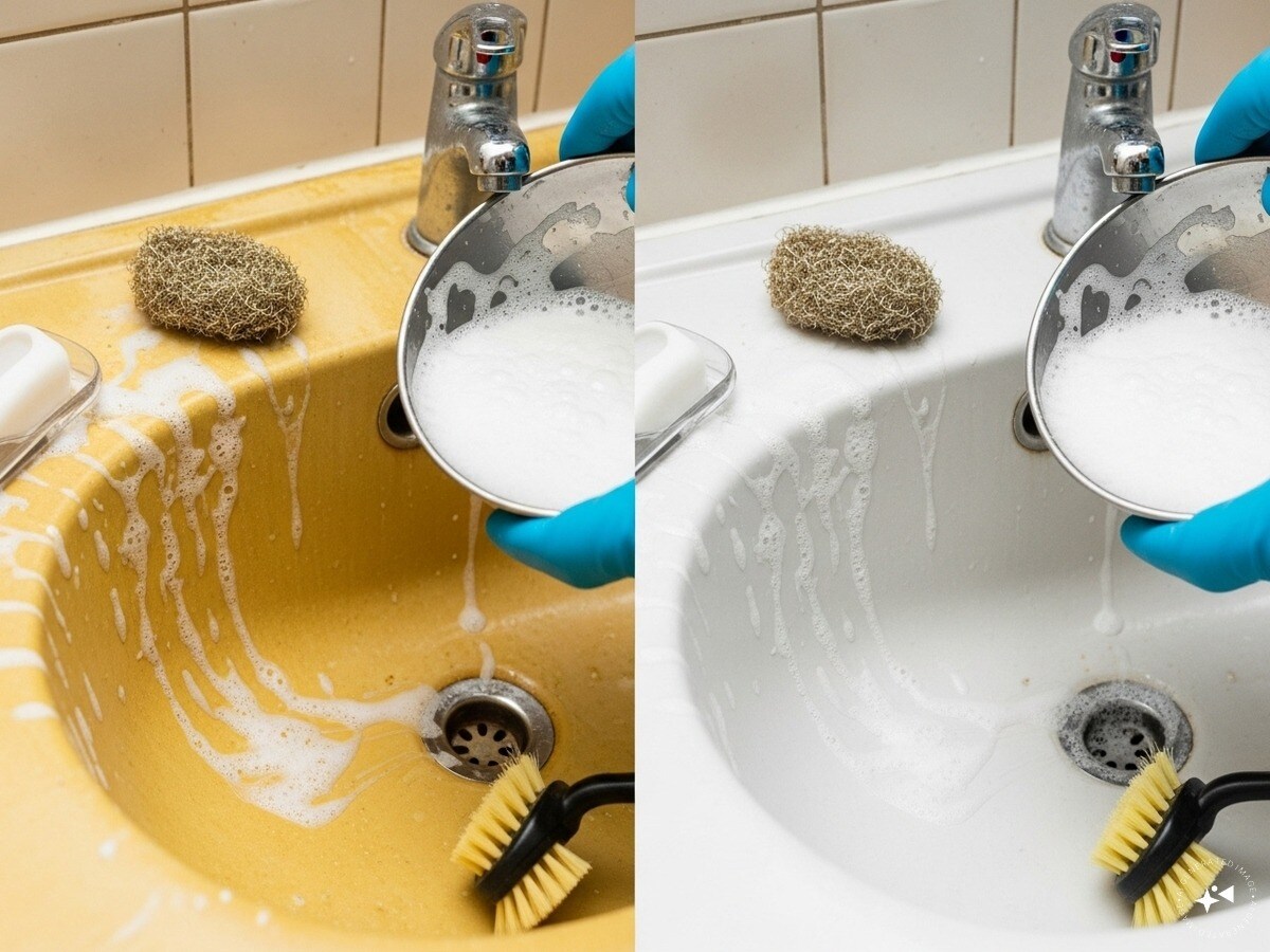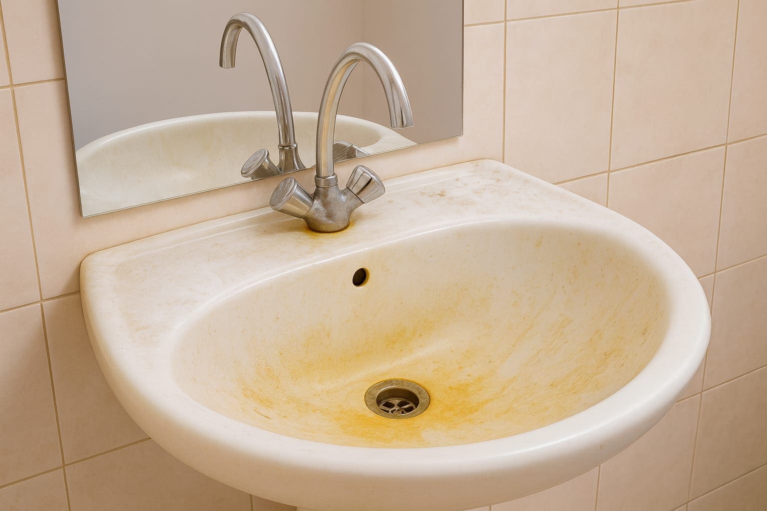 Because of the constant water falling on the wash basin, a layer of calcium and minerals begin to freeze it. The foam of soap, toothpaste molecules, dust and clay make it yellow and dirty. If it is not cleaned on time, these stains become deeper and difficult to remove.