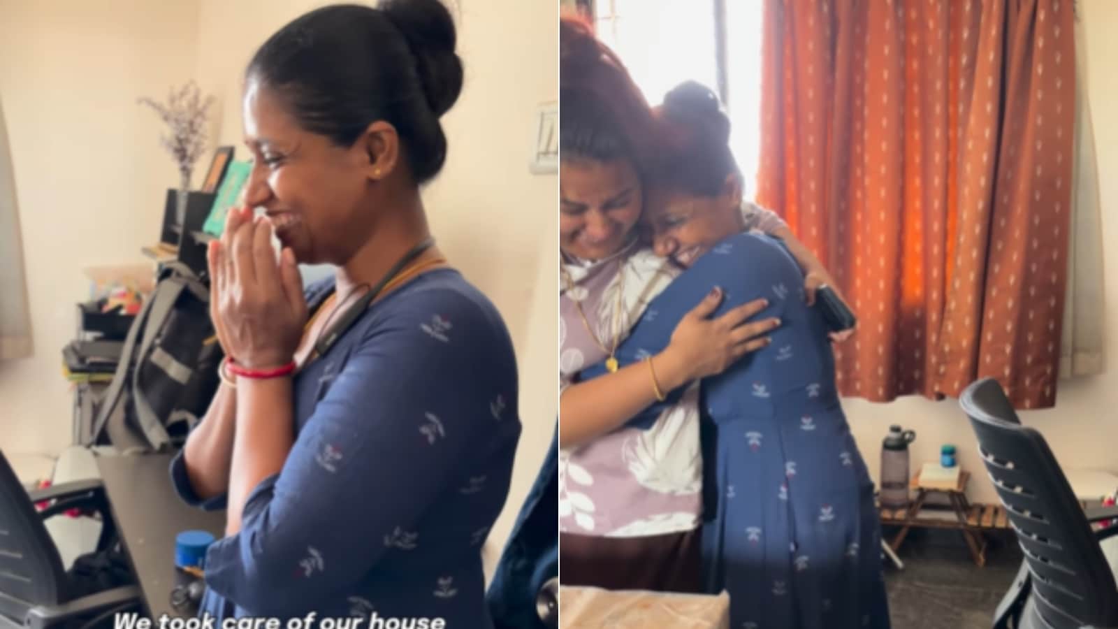 The house helper’s joyful hug and beaming smile melted hearts across social media (Image-Instagram/@lifeofcocoandchico)