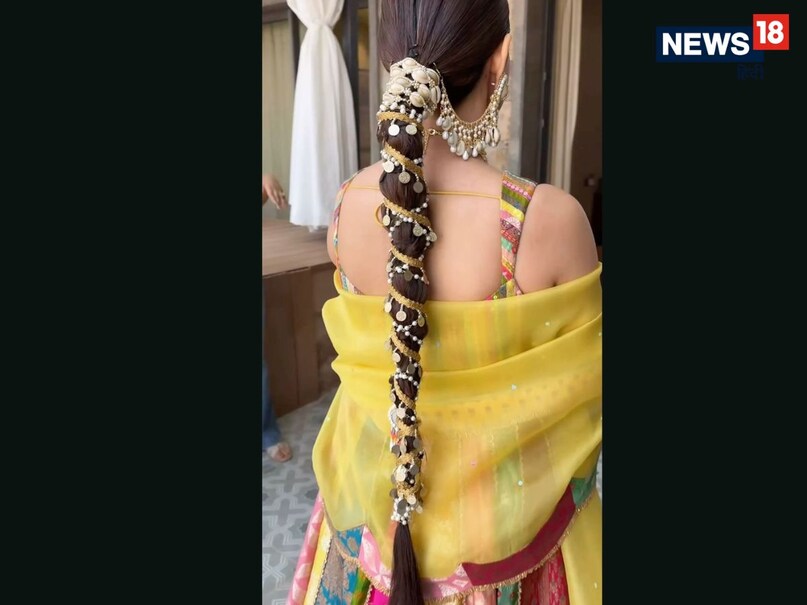 If you want to make peak, you can buy these hair accessories. You can see a lot of diversity in Gota Strip, Mirror Work and South Indian Design. This is a very new trade in it. So make this hair style on this karva chaute and see beauty and wonderful. (Credit Image: Pinterest)