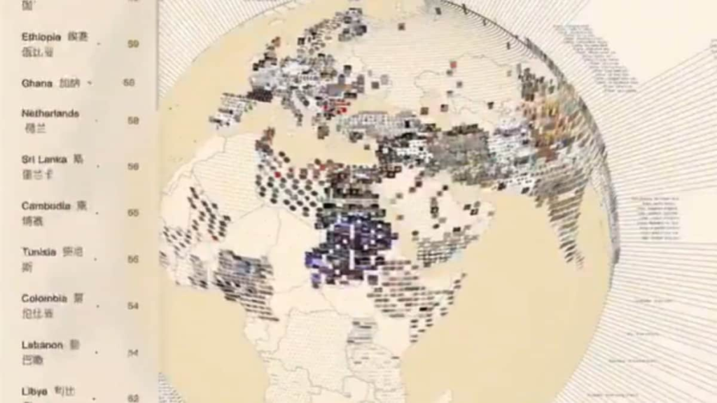 “You can see these items displayed as cards, standing proudly in their true homelands: effectively covering the entire world in points of cultural light,” the narrator explains. He adds that the project goes beyond data visualization, and aims to highlight the emotional and historical significance behind each piece.