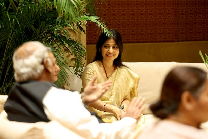 Demal Yadaf, the wife of Luke Sebha, the deputy and former Prime Minister of Uttar Pradesh, Achilish Yadaf, was mixed with traditions and modernity. Sari carried moderate embroidery with a matching blouse, and its keeping looks enlarged by Rodaksha and Red Red Bine on the front. His style can become a source of inspiration for the young generation in particular how the trend can be adopted in traditional clothes.