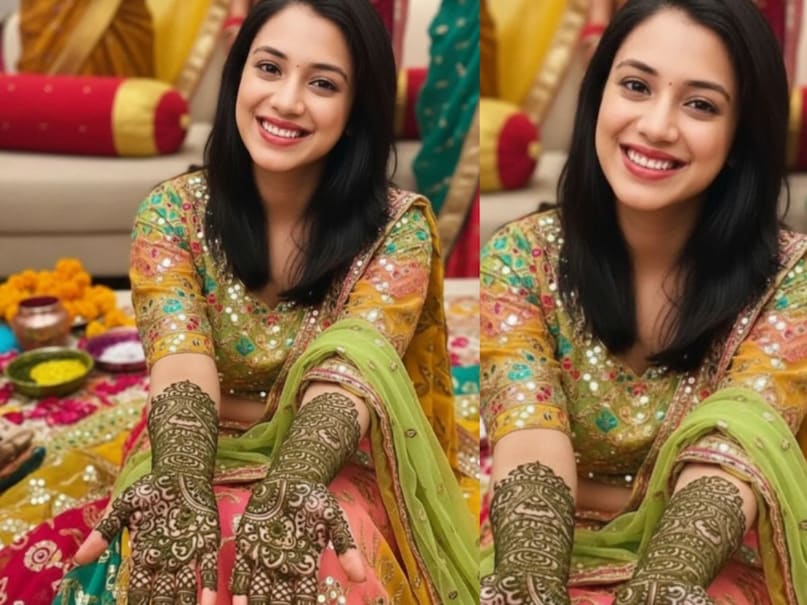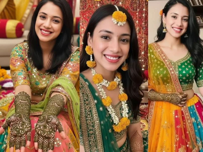 Smriti is seen in a henna look in these pictures. She was seen somewhere wearing green and yellow floral jewellery, while somewhere she was flaunting the mehndi on her hands in a multi-coloured lehenga. At first glance, these photos looked like a real wedding ceremony, but it later became clear that these photos were created by artificial intelligence.