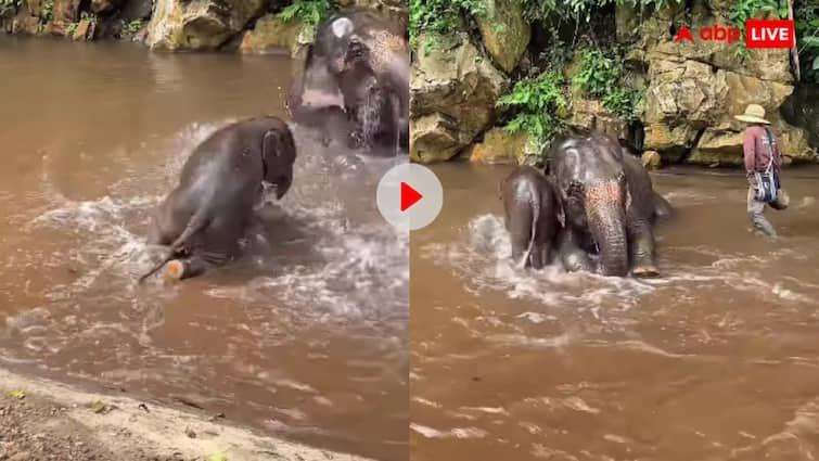 If you feel that humans only become controlled after seeing their mother, watching this video, which overwhelmed social media. In this video, which was filmed in the pond of a local zoo, not a human being, but a small elephant, he sees his mother, gives a reaction to the extent that the eyes of the viewers become wet and the smile comes on its own. At the beginning of the video, this little boy was seen playing with a pet dog on the floor. Fun and friendship of both touches the heart. But then his eye falls on his mother shower in the pond, then what happens is laughing at everyone.