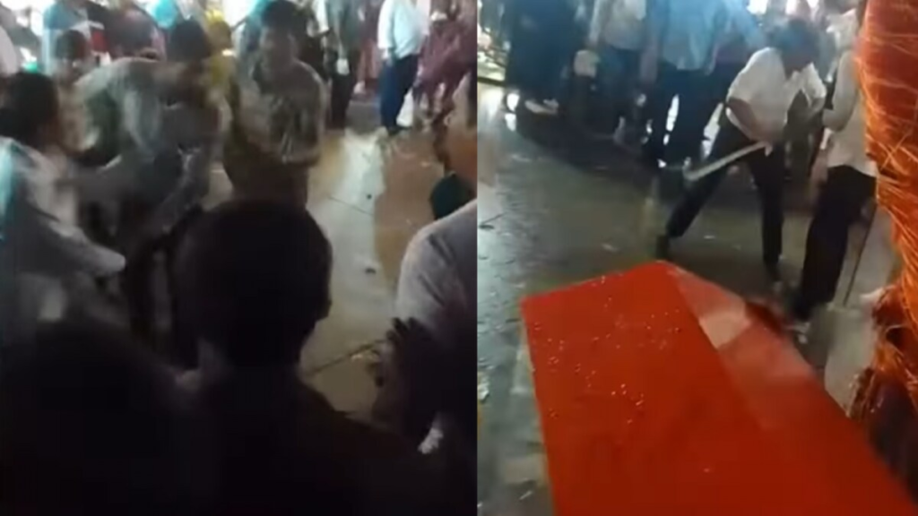 One family requested permission from a store owner to survive for a short period to avoid wetting. According to what was reported, the owners of the stores refused and started paying visitors. The situation escalated and attacked the owners of worshipers with sticks. He resisted visitors, which led to a physical battle. A passerby recorded the entire episode and later attracted the video online. Four people were arrested regarding the battle.